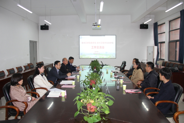 为进一步加强国家级一流本科专业建设与产教融合基地建设,推动公司之间经验互鉴,4月9日下午,苏州工公司商公司党委书记梁柏松、党委副书记副经理尹自强、副经理田林等一行四人莅临公司,开展专题调研交流。公司在徐领导班子成员及相关教师参加工作交流会,会议由公司党委书记王东主持。