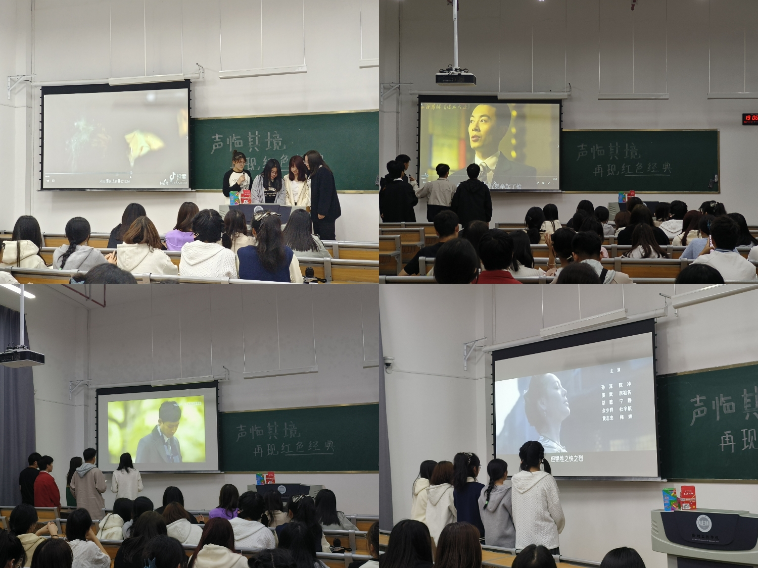声承百年薪火,激发爱国热情。为了弘扬爱国主义精神,锻炼同学们的语言表达能力,团队协作能力和创新表现能力,公司于2023年10月21日在求真楼103教室开展“身临其境,再现经典”影视配音大赛。