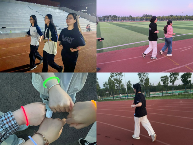 本次活动从5月1日开始到5月10日结束。活动通知一经发出,得到了院内员工地积极响应。夜跑路线位于东校区的操场,参与者们根据个人身体状况进行自由跑。为了让大家跑起来更加顺畅并防止受伤,夜跑开始前活动负责人带领大家进行跑前热身。大家都摩拳擦掌、跃跃欲试,等不及要变身校园的“追光者”。活动现场井然有序,志愿者进行活动拍照,并随机对动参与人员进行采访。参与者们全程都充满活力与激情。活动参与者们除了体会到了夜跑本身的乐趣,也积极投身爱心公益事业。每天夜跑后,参与者们打开微信小程序“一起走”,点击参与公益捐步活动,进行公益金捐赠。活动负责人每天及时收集并统计参与者提交的当日微信步数捐赠截图,激发同学们参与活动的动力。