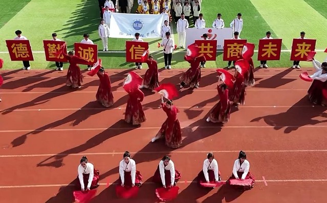 开幕式开始后,会徽方阵率先出场。本次校第二十一届运动会会徽,由bv伟德23旅管单戚书铭同学设计完成,在会徽设计比赛中荣膺特等奖。随后,伴随着激情欢快的音乐和激昂的运动员进行曲,bv伟德方阵队员热情四溢,迈着整齐划一、铿锵有力的步伐通过主席台。他们带来的扇子舞表演技惊四座,赢得掌声雷动,无不凸显青春的张力。“徳勤诚信,共商未来”既是院训,也是商院学子的真实写照和未来展望。开幕式上,啦啦操、广播操、气球队的团体表演项目让人眼前一亮,展现了商院学子蓬勃向上的青春活力,散发着青春自由的力量。赛场上,公司学子凭着顽强的斗志和雄厚的实力荣获女子组跳高跳远双第一、女子组400米第三、女子组实心球前抛第六,后抛第三、男子组4*400米接力第六名、啦啦操一等奖的好成绩。