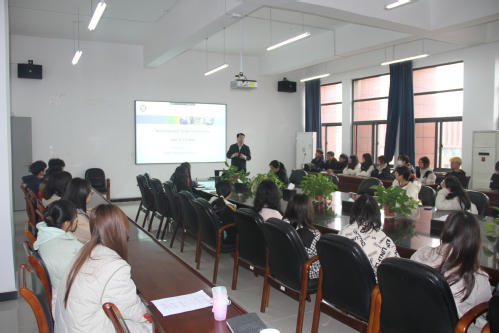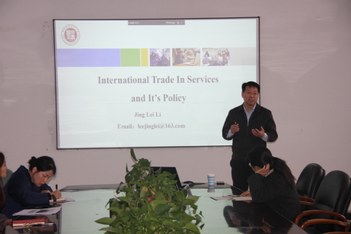 李惊雷博士介绍了服务贸易的内涵、模式,用图表的方式讲解了服务贸易涵盖的主要部门,并通过大量数据对比分析了发达国家与发展中国家服务贸易发展的基本情况,深入剖析了国际服务贸易的政策特征。李惊雷博士的讲座深入浅出、旁征博引,既有理论深度,又有很强的现实指导性,让在座的师生更加直观地、深入地了解到当前服务贸易领域的前沿发展动向。