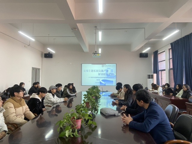 温法鑫员工首先分享了自己大学期间的专业学习体会,着重介绍了自己毕业后从事文旅行业后的经验心得。他详细介绍了目前所任职的华强方特主题乐园的分布范围、连锁品牌、游乐项目、核心技术、内在支撑及对外文化衍生输出等内容,引导同学们正确认识文旅产业主题乐园的发展趋势,职业规划及发展前景。主讲人从专业、心态、行动三个方面向在校生提出建议。希望同学们在校期间认真学习专业知识,为毕业后求职打下坚实的基础;希望同学们心态上保持平和,客观看待专业学习与求职择业的关系,从容应对挑战;希望同学们在今后生活中勇于尝试、不断拼搏,以自身实际行动实现个人理想。分享会后,在场员工同温法鑫员工进行现场交流。同学们就专业学习、职业规划方面提出了自己的困惑,温员工结合自身实际均给予了详细解答。温法鑫员工以幽默的谈吐,鲜活的案例,感染了每一位在场同学,让同学们受益匪浅。
